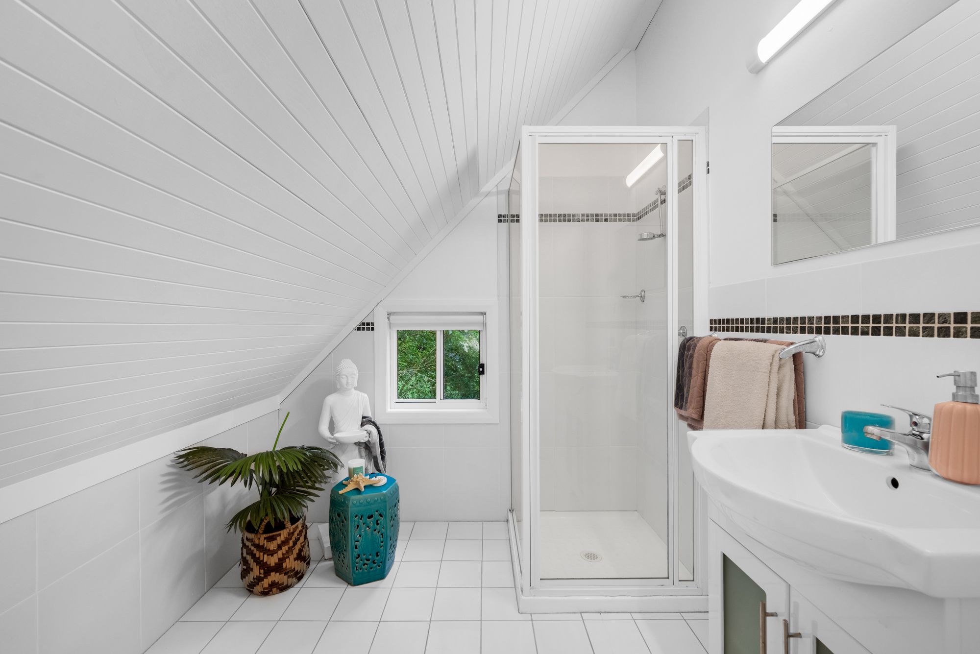 The spacious and modern open-plan kitchen provides a seamless connection with both the living room and the verandah, offering the perfect spaces for both everyday living and effortless entertaining in style with a leafy backdrop. Also on the ground floor is the north-facing first bedroom with a built-in wardrobe and a modern bathroom directly across from it. The cottage has convenient internal access to the garage with automatic opening, a workshop area, laundry and plenty of storage space all under the main roof.