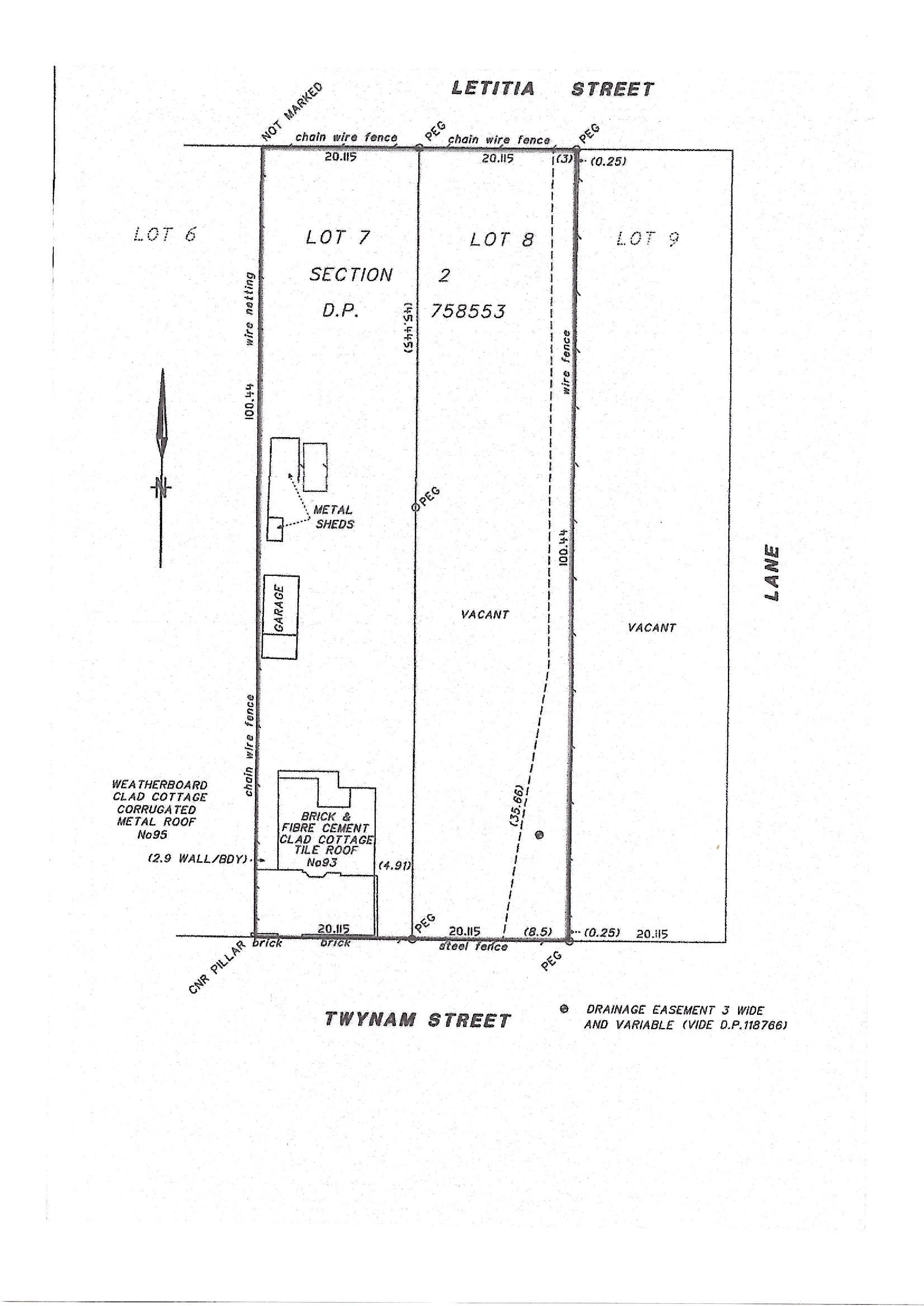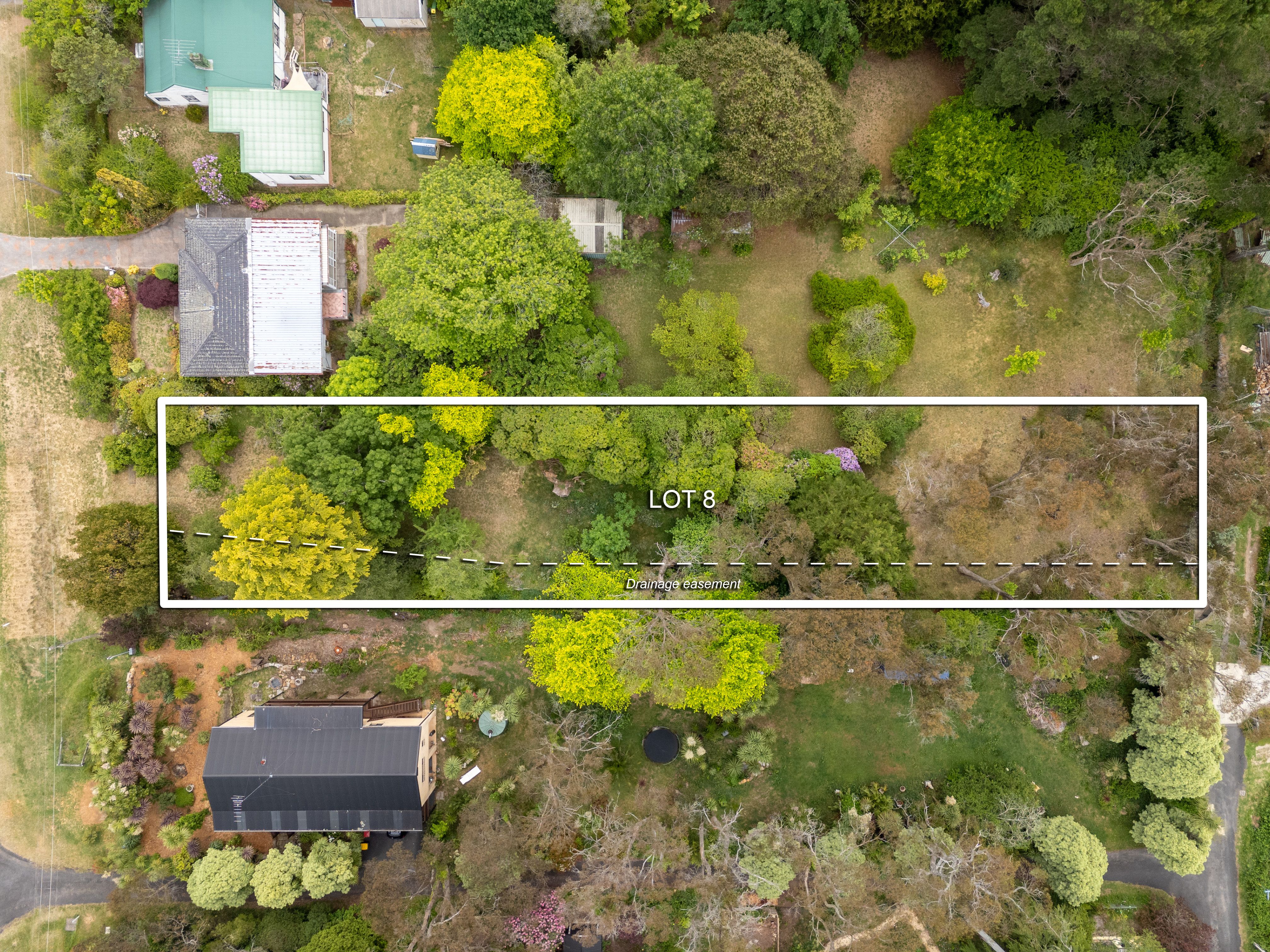 Note the outlined drainage easement, and all potential purchasers should rely on their own due diligence.