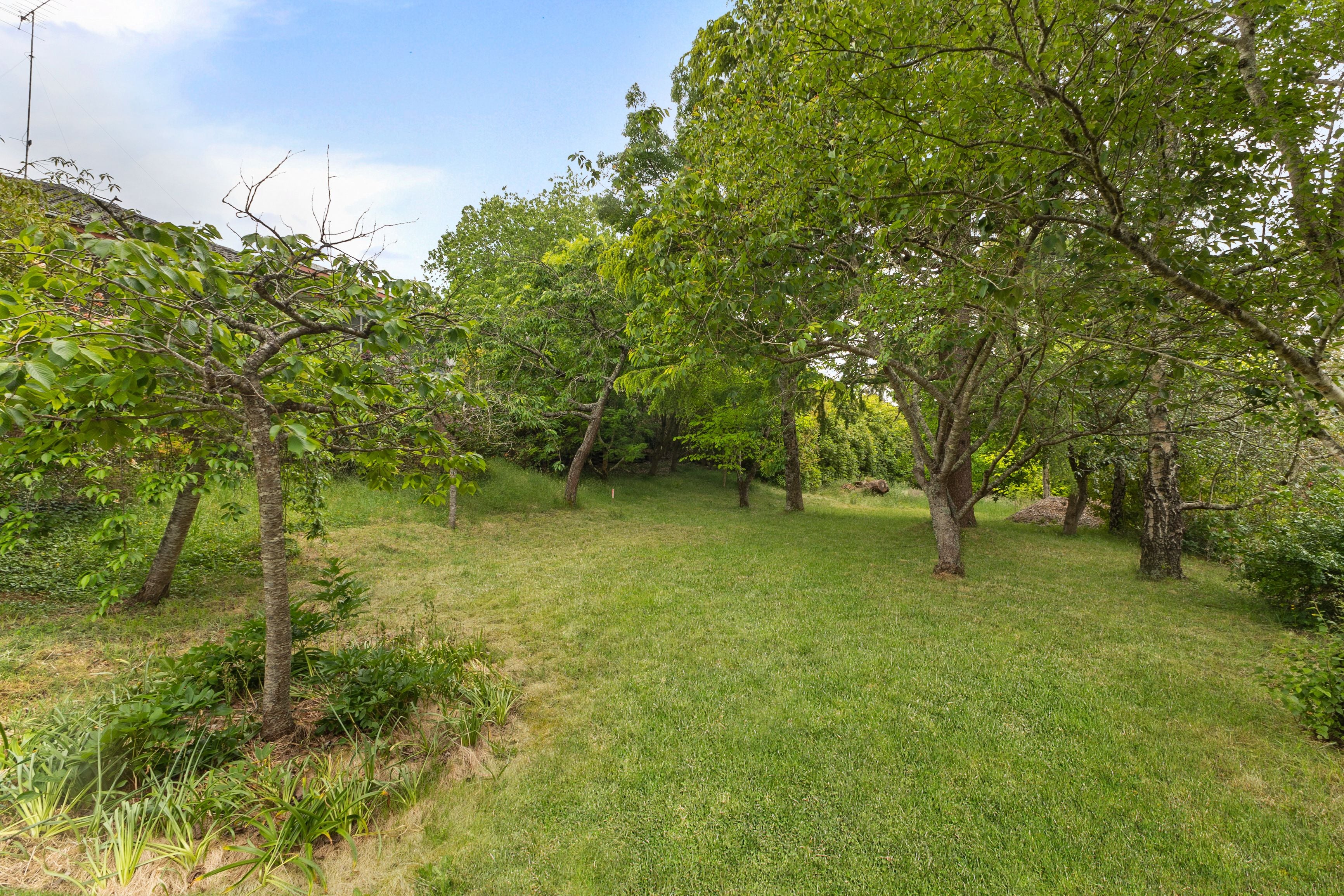 Set back from the road, you are welcomed by a lush, tranquil environment where mature Rhododendrons and graceful weeping cherry trees frame the ideal north-facing rear aspect, providing the perfect amount of direct sunlight. Within the approximate building area, the terrain is beautifully level or close-to, whilst being lightly wooded.